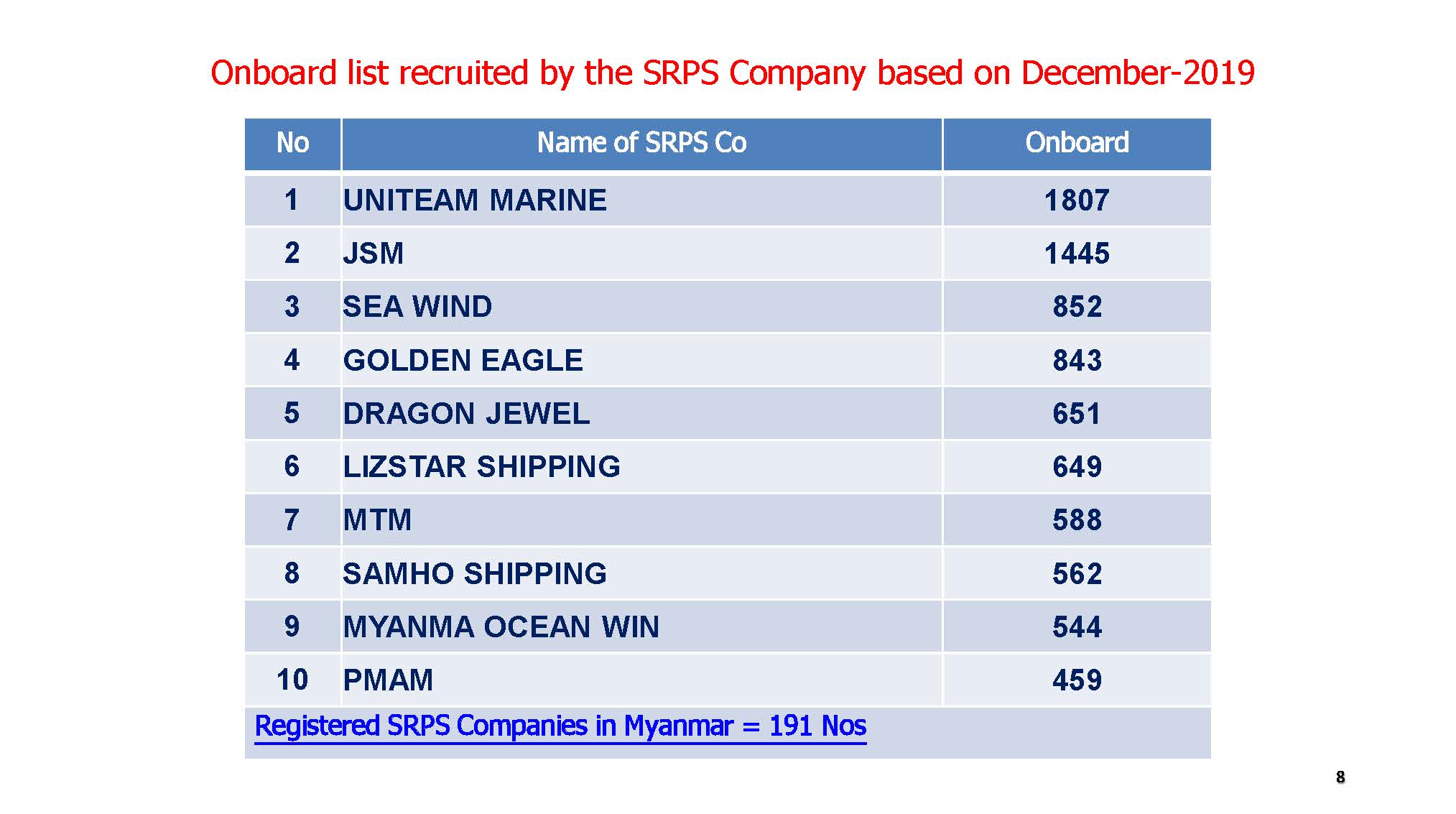 STATISTICS OF SEAFARER EMPLOYMENT IN MYANMAR