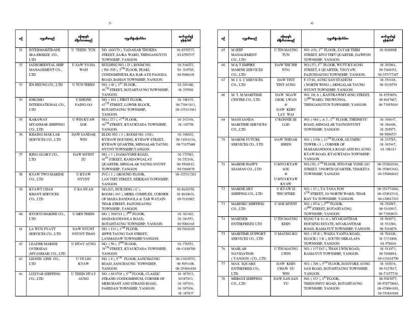 STATISTICS OF SEAFARER EMPLOYMENT IN MYANMAR