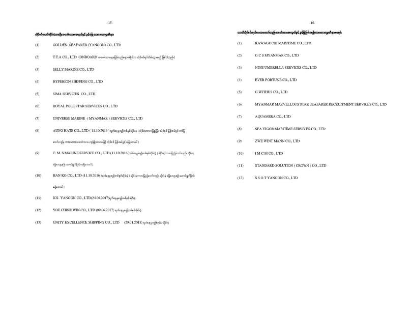 STATISTICS OF SEAFARER EMPLOYMENT IN MYANMAR