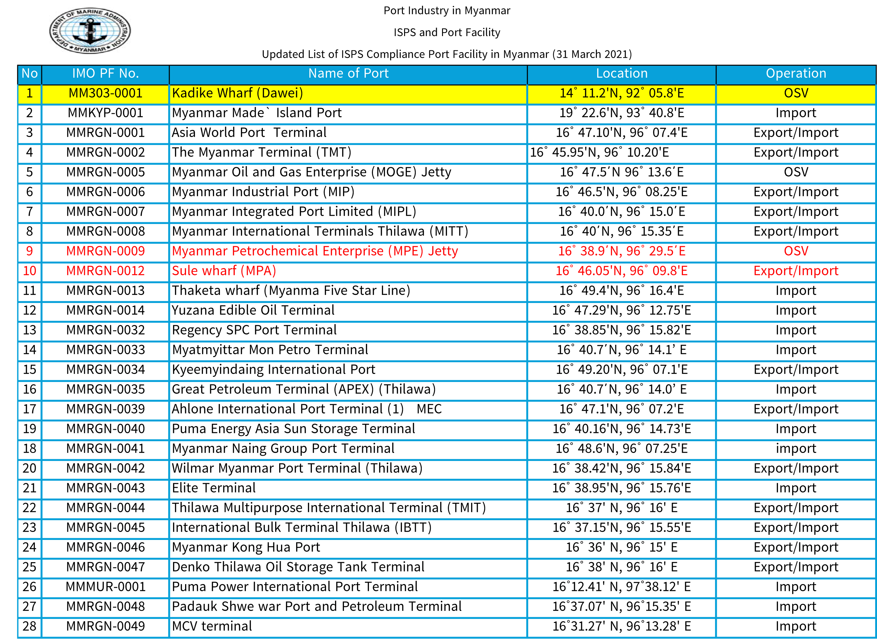 Myanmar Port Authority (MPA)
